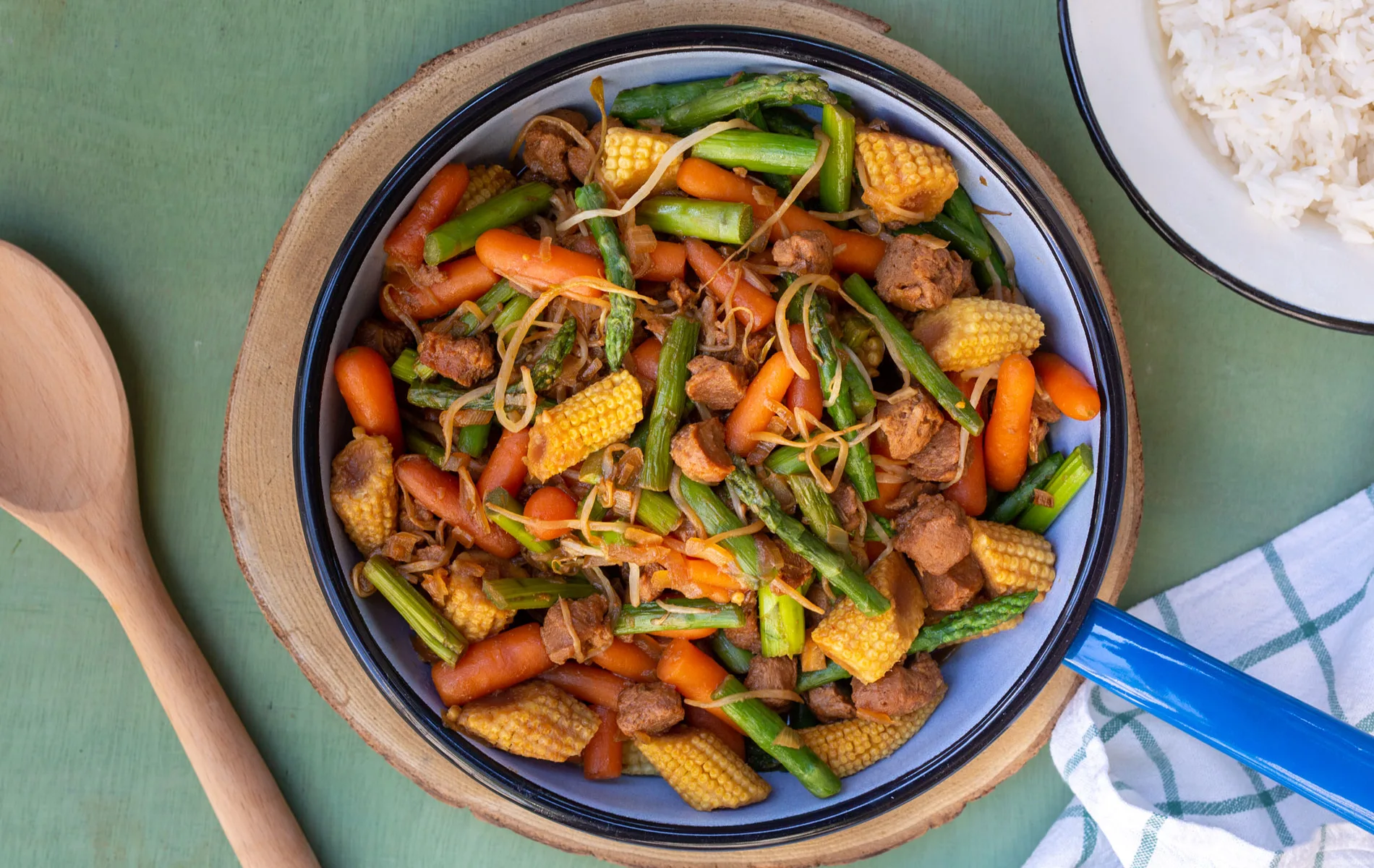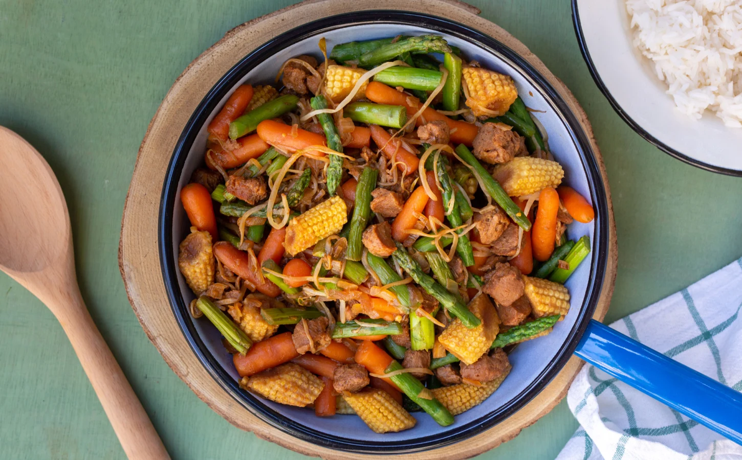 תבשיל סויה, אספרגוס, גזר, תירס ונבטים